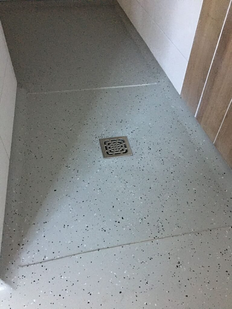 Betonlook vloeren geven een spa- achtige uitstraling aan badkamers en zijn bestand tegen vochtige omstandigheden.
